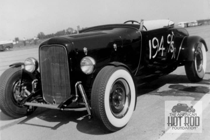 For our next act, MSL_012 is one of the snapshots that was taken at Great Bend during the first NHRA Nationals in ‘55. We identified the car as being entered by Bart and Helen Root from Norwalk, California. We checked our files and found that Helen had been tearing up Southern California tracks as the car’s shoe and in Great Bend, she had made it all the way to the final elimination run in Class C Street Roadster before being eliminated by Dale Ham with a speed of 91.64 mph. In our digging, we also discovered that this car was featured on the cover of the July ’55 issue of Hot Rod and a story on it inside. So, under those smooth hood side panels of Helen’s grocery getter was a 259″ ’38 Ford block that was fitted with a Merc crank, Sharp heads and three ’97’s. This is another car for our garage.