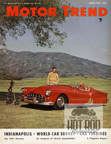 Being the researchers that we are, we present this Eric Rickman shot of the same car as above seen on the cover of the June ’51 issue of Motor Trend (JMC_4640). This car was named the “Skylane Motors Special”. For you older golf fans pretend Chris Schenkel is whispering “look at the birdie” for Eric before he shot it. The car was the brainchild and work of perfectionist builder Leroy Viersen of Sun Valley, California that took almost three years to build. Starting with a 1932 Ford chassis (yes it is a hot rod) Leroy gathered up some ’48 Buick front fenders, ’48 Continental rears, a ’49 Cad grill and had at it filling the spaces in between with some steel using nothing more than a hammer and a torch. Under the hood was a slightly warmed-over ’48 Merc V8.